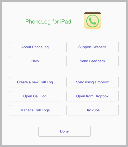 PhoneLog for iPad Help |